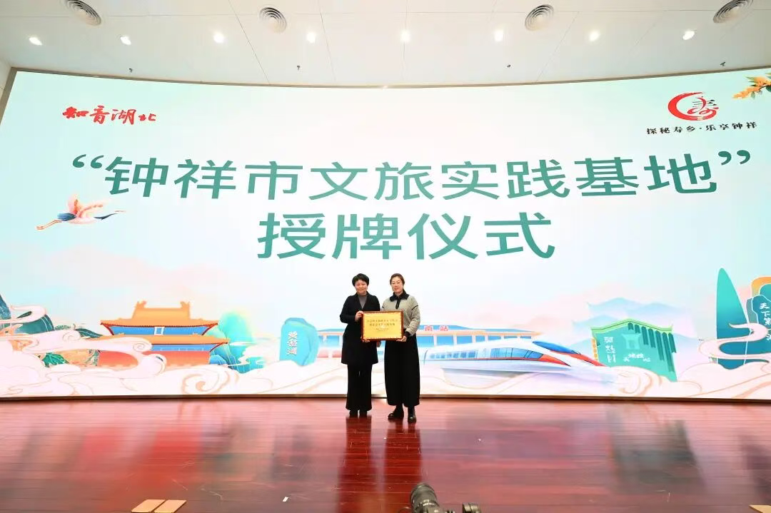 向钟祥市文旅局授予“钟祥市文旅实践基地”牌匾